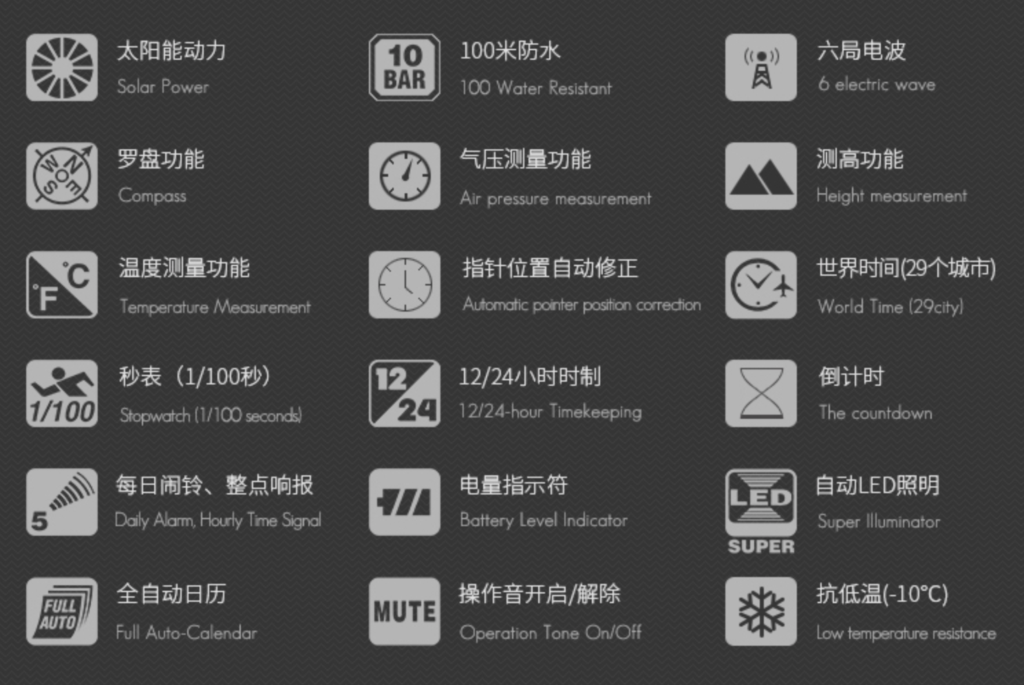 除以上的独特性,PRO TREK PRW-60YBM采用了太阳能动力驱动,在吸收光线之后会持续的给PRO TREK PRW-60YBM输入源源不断的动力。并搭载第三代三重感应器、可接收6局电波,诸如防水、高度、温度、罗盘等各种功能也一应俱全。