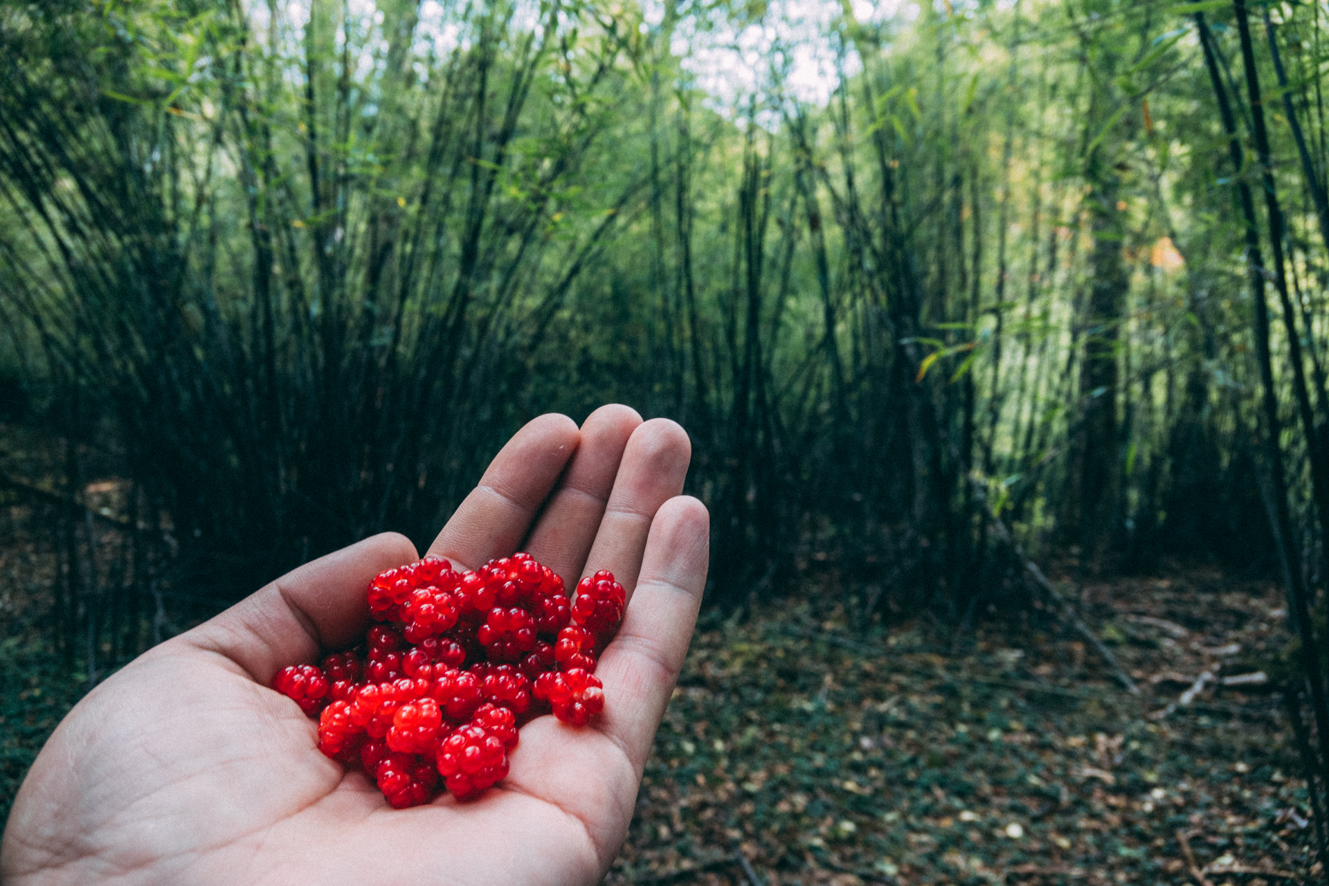 一路走走停停,除了休息还常为路边“美味”驻足良久。其中有一段随手可摘一捧悬钩子解个馋,顿时乏意全无,惬意的不行。