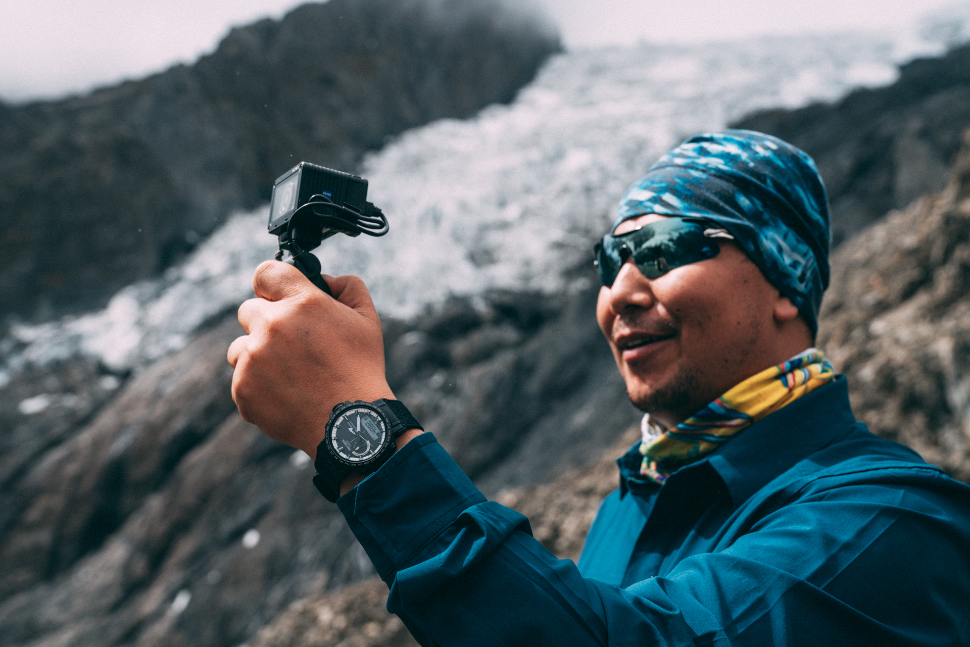 一位在香格里拉接上的队友忘掉手表,一眼看中了我的CASIO PRW-60YBM,非要体验一把。最终,十分钟情它「太阳能动力驱动」的点。